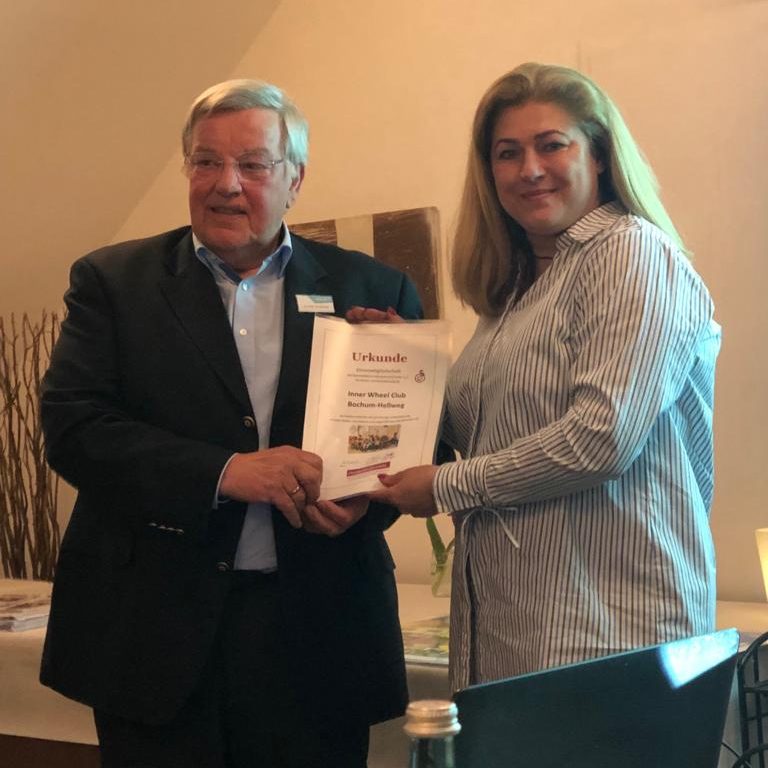 Aufgrund der langjährigen Verbundenheit mit den Damen des Inner Wheel Club Bochum-Hellweg überreichte Jochen Grothkop am 15.04.2019 eine Ehrenmitgliedschafts-Urkunde an die Präsidentin.